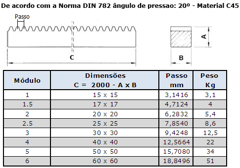 Cremalheira Modulo 2.5 - 25x25x2000mm em Aço 1045